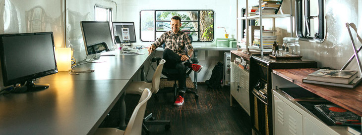 Mówi się że szewc bez butów chodzi jednak Jay Ferracane dowodzi, że stereotyp można złamać. Po latach spędzonych na w nieodpowiednim otoczeniu doszedł do wniosku, że nie ma tam miejsca na kreatywność. Teraz siedziba firmy znajduje się zaledwie kilka kroków od domu Jay’a w aluminiowej przyczepie kampingowej Silverstreak z 1991 roku. Powierzchnia przyczepy liczy ok 90 m2 i mieści trzy stacje robocze ustawione sąsiadująco na jednym blacie.